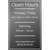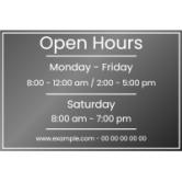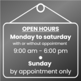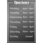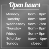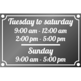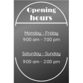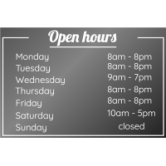 As well as providing practical information, shop window opening times can also help to reinforce a company's brand image by demonstrating to customers its organization and professionalism.